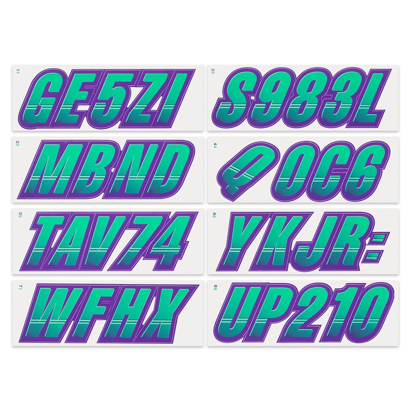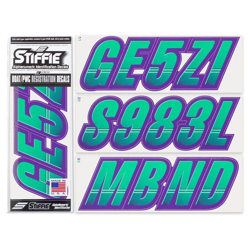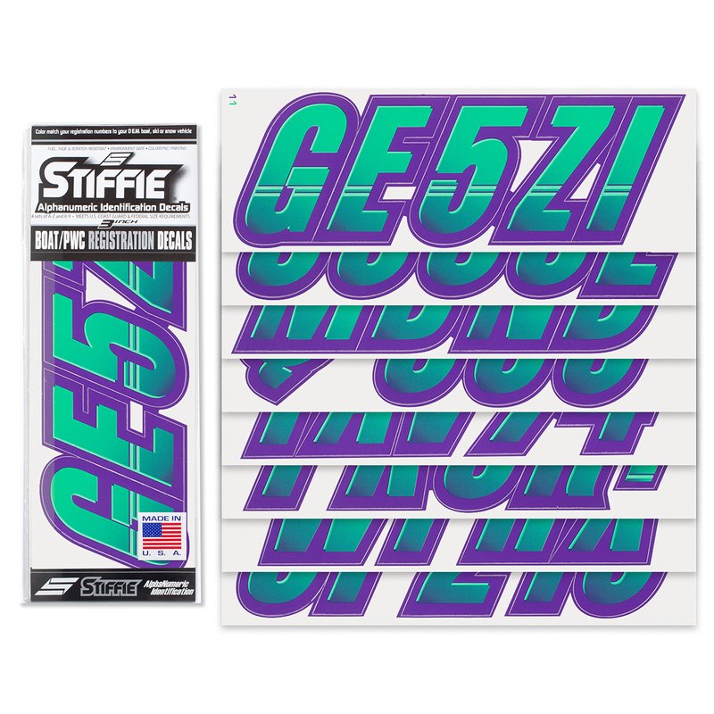 STIFFIE Techtron Seafoam Green/Purple 3" Alpha-Numeric Registration Identification Numbers Stickers Decals for Boats & Personal Watercraft