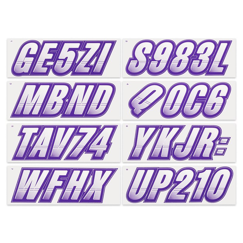 Stiffie Techtron White/Purple 3" Alpha-Numeric Registration Identification Numbers Stickers Decals for Boats & Personal Watercraft
