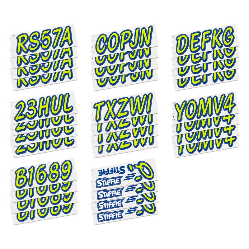 - All STIFFIE kits include 4 each of the letters A-Z and the numbers 0-9 for a total of 146 decals.