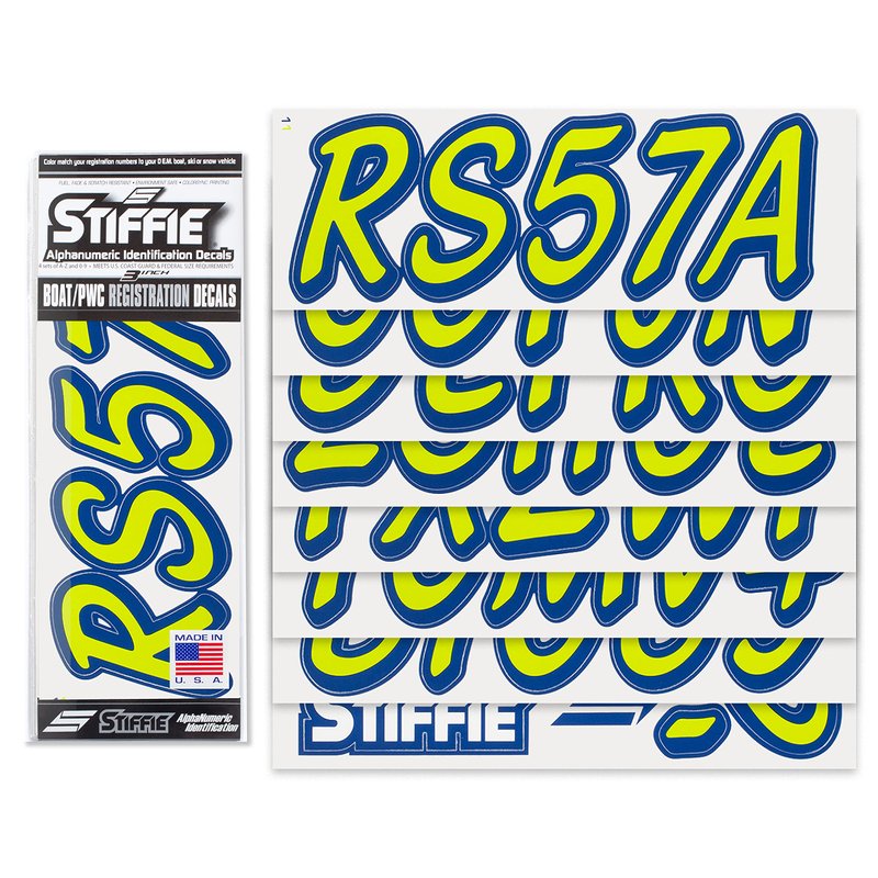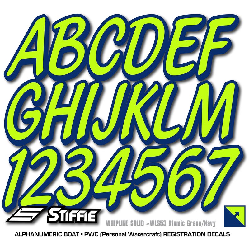 STIFFIE Whipline Solid Atomic Green/Navy 3" Alpha-Numeric Registration Identification Numbers Stickers Decals for Boats & Personal Watercraft