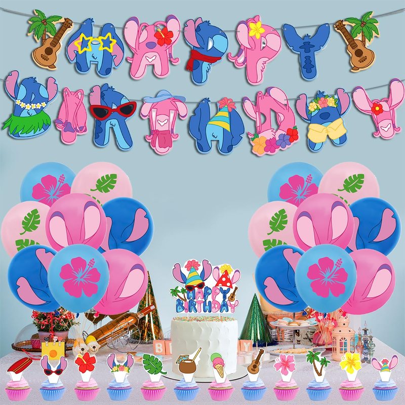 Stitch Party Decorations, Stitch Birthday Supplies including Stitch Birthday banners, balloons, Cake Toppers for Stitch Birthday Party Decorations