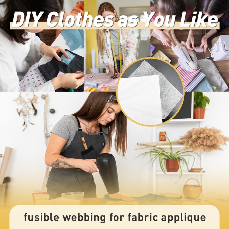 - NO SEWING: This paper-backed fusible web will turn any fabric into a fusible fabric. Fuse fabric to fabric, or to any porous surface, such as wood or cardboard. Our fusible web (double-sided adhesive) creates a durable bond while preserving your material’s soft and malleable nature. Fusible bonding web will not leave marks on the fabric, makes strong and reliable work to take place of stitches in most crafts and repair.