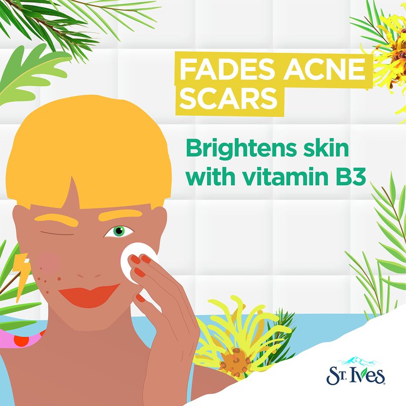 - MADE WITH: St. Ives Clear Skin Face Toner for oily to acne-prone skin is made with 100 percent natural tea tree extract and micellar water technology, and is enriched with niacinamide