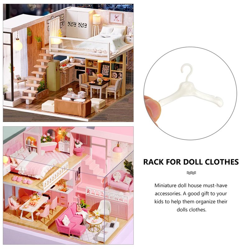 - Miniature Clothes Hangers: Specially designed to organize your doll clothes.Simulation doll clothes hangers can be use as decorations in the cloakroom of the doll house, you can also diy, match mini clothes hangers and other accessories with homemade handicraft products