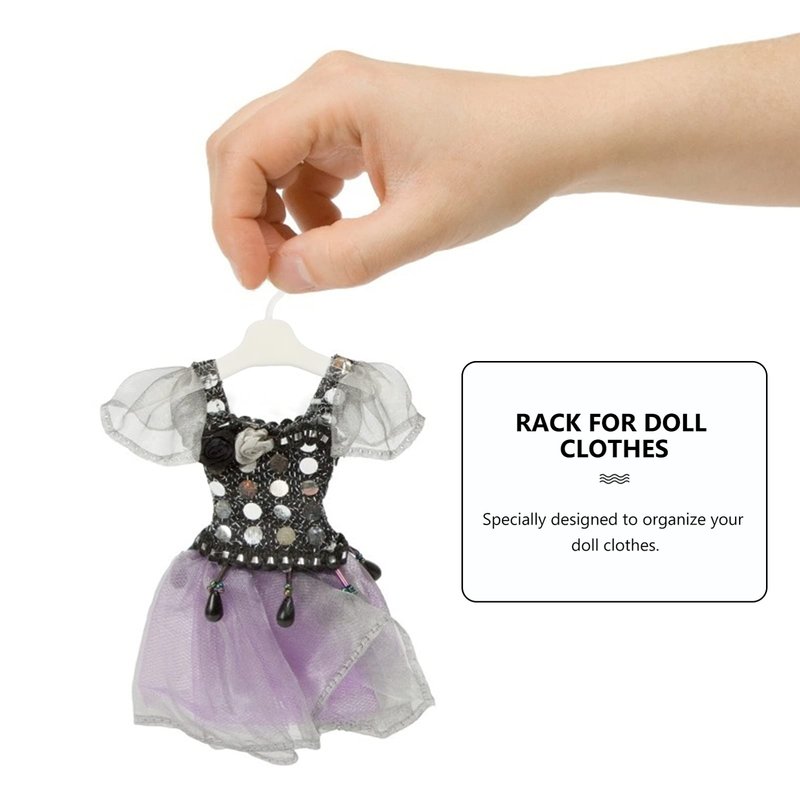 - Doll Coat Hangers: Compact size, a set of 50pcs, lightweight and easy to carry.Designed for organizing and hanging the clothes of your doll. Keep your doll clothes neat and organized. The mini doll hanger is the best for friends who have dolls and doll houses.doll hangers