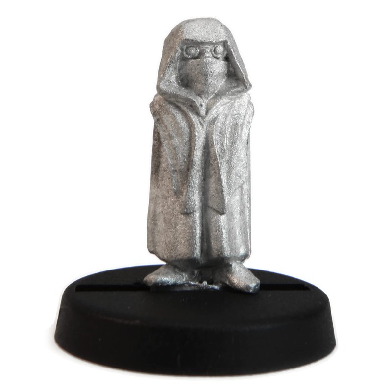 This 18mm tall male Gnome Shrouded Figure has a great amount of detail for dungeon-crawling, RPGs and table top war games. Miniature could be used as a Wizard, Mage, Ghost, Quest Hook, Disguise, Warlock. This Gnome Shrouded Figure is equipped with cloak and dark mystical eyes . 20mm diameter slotted round plastic base included. Figure is made of 100% lead free pewter.