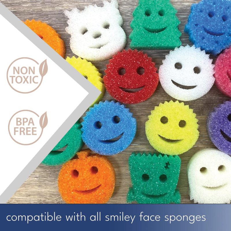 - Minimize Countertop Clutter - Our Storage Theory Suction Cup Sponge Holder allows you to free up space on your countertop and dish drying rack by creating smart, in-sink storage for round smiley face-shaped sponges. The cute sponge holder is sleek and compact for comfortable use in sinks of any size.