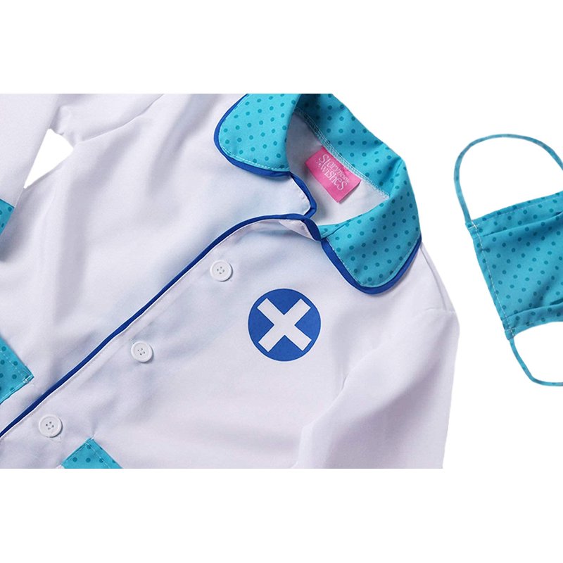 StoryBook Wishes Toddler Doctor Coat & Face Mask for Toddler Doctor Costume | Toddler Doctor Dress Up | Blue and White - For Ages 4-6