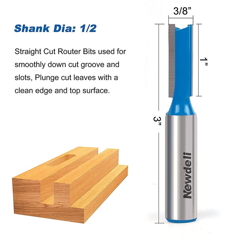 - [Speicification] 3pcs 1/2 inch shank professional straight router bit set, Blade Material: YG6 carbide; Body Material: 45# carbon steel. Cutting Diameter:1/4",3/8", 1/2"; Cutting Depth(Approx.): 1",1",1".