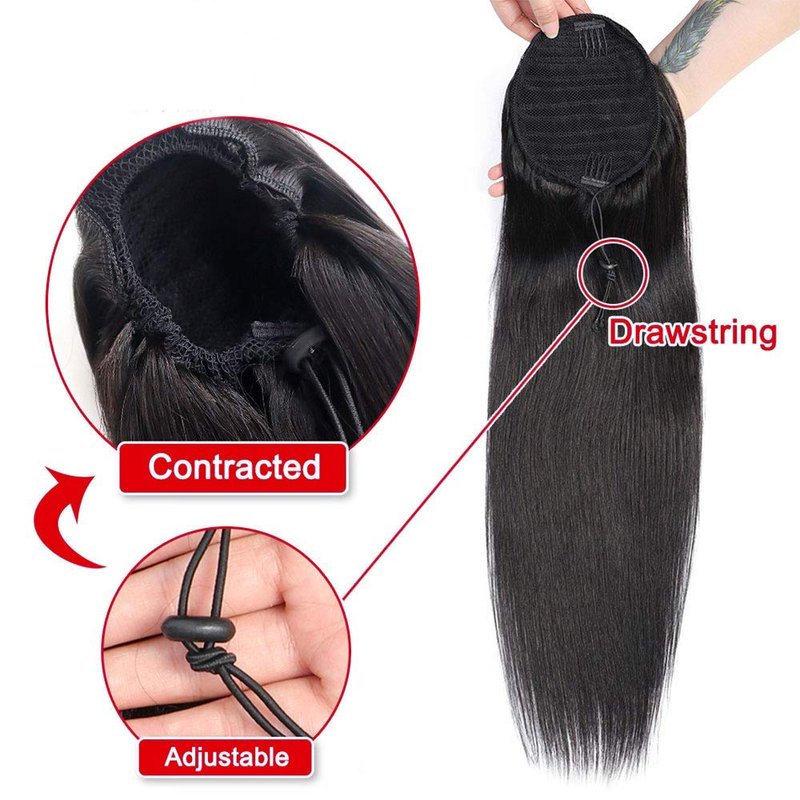 - 💖 Drawstring ponytail human hair extension. straight hair, 100% human hiar. Does not contain any synthetic materials. Soft natural, reusable, washable. no shedding, durable, reusable, and can last long more than 6 months.