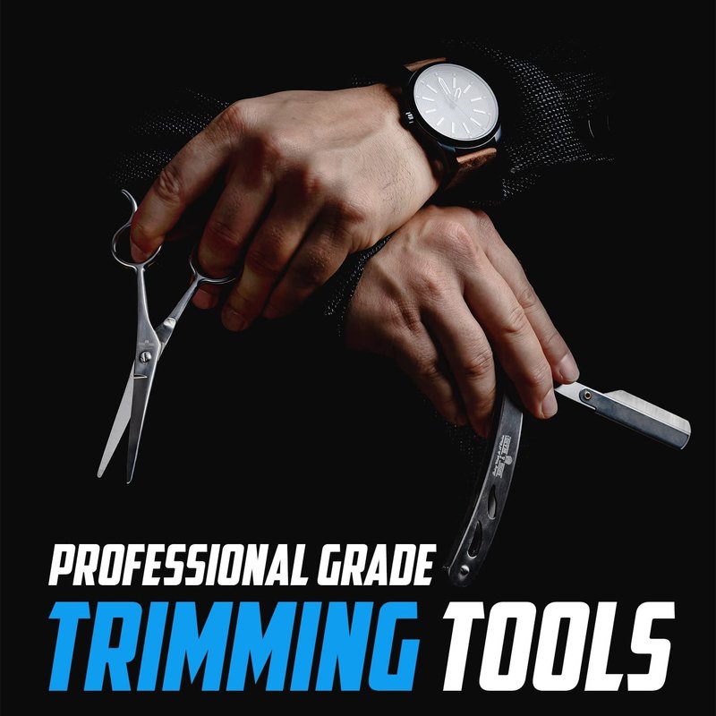 - COMPLETE KIT: We're committed to helping men put their best face forward, which is why this straight razor kit comes with everything you need with a professional grade single blade razor, 50 individually wrapped razor blades for men, as well as a pair of ultra-sharp beards and mustache scissors. Our straight razor shaving kit is the more brilliant choice for men who want to look their best.
