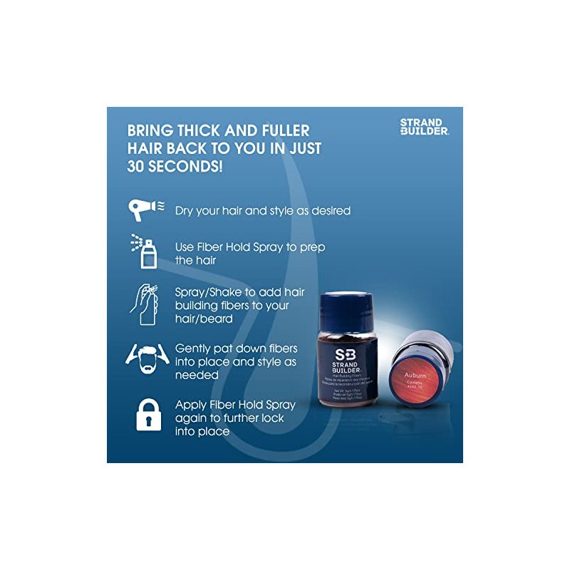 - STRAND BUILDER HAIR FIBERS: Transform thinning hair in minutes with a hair loss product that works better than regular hair powder. Our Strand Builder keratin hair fibers provide men and women a means to obtain thicker, fuller appearing hair.