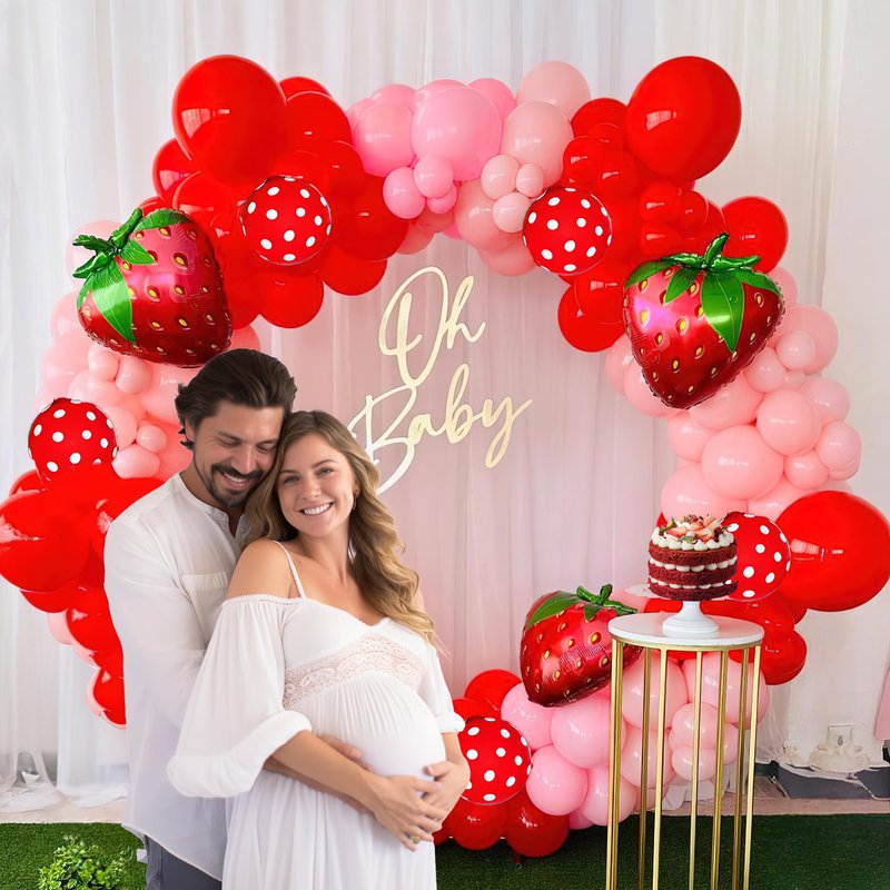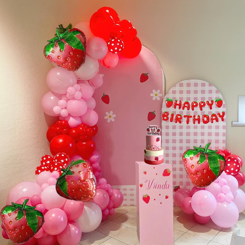 - [Sweet Strawbberry Party]: Juicy and beautiful strawberries have always been a popular fruit for everyone, and our sweet strawberry theme party will surely make everyone like it. Pink tones and strawberry foil balloons, these cute little items satisfies the girls' hearts very well. Create a unique and stylish ambiance indoors or outdoors. Delight in Cherished Memories with our Strawberry Balloon Arch Kit.