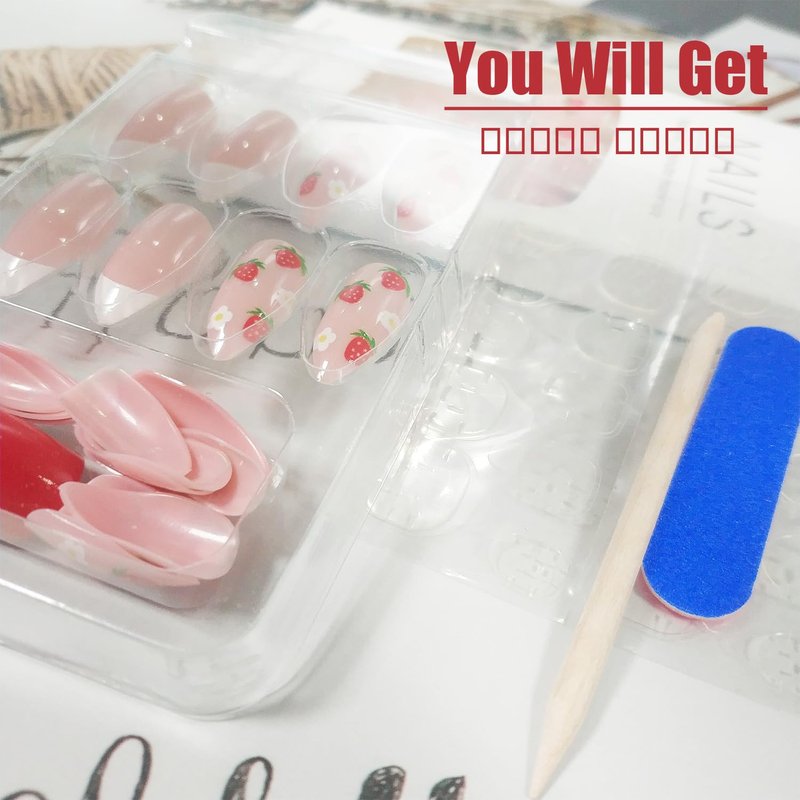- 【Strawberry Stick on Nails】 Fresh press on nails is made of high-quality ABS environmental friendly acrylic material. It is odorless and not easy to fade. provides you with a comfortable and wonderful experience.
