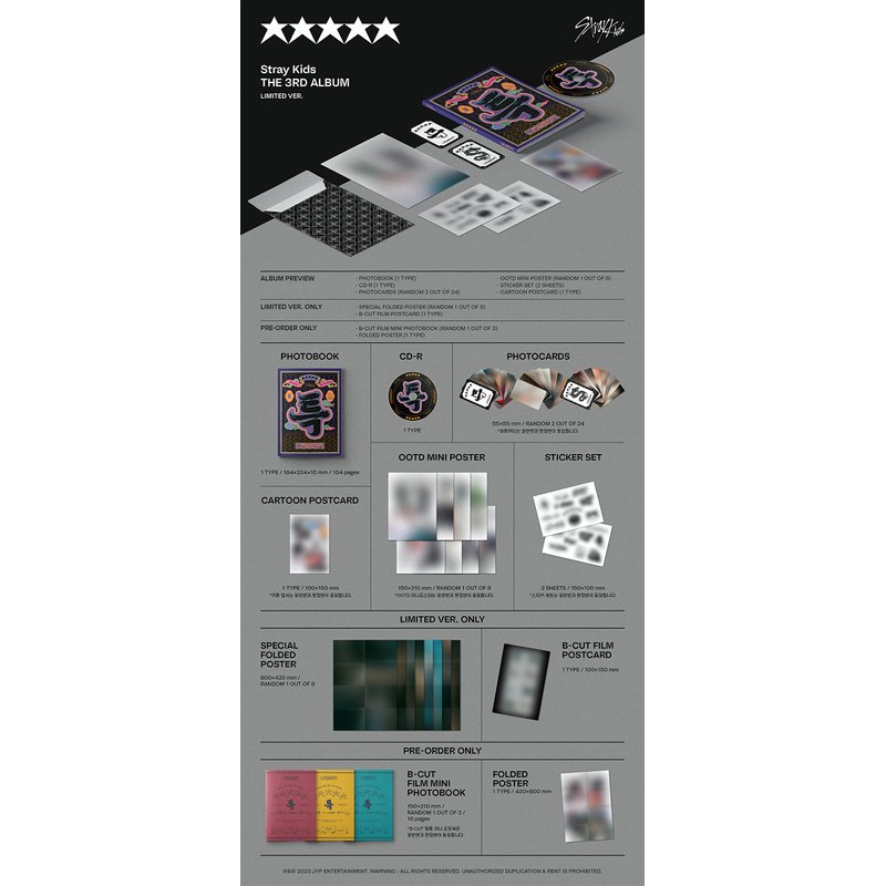 Stray Kids 5-STAR, The 3rd Album, CD + Photo Book + Mini Poster on Pack + Photo Card (Limited Version)