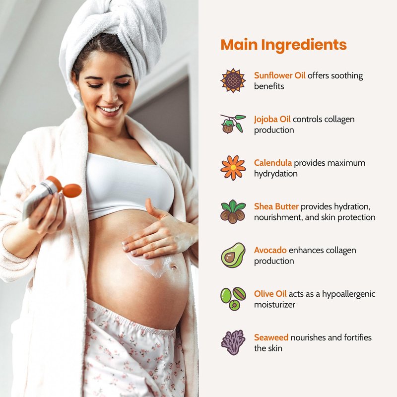 - 💜 CERTIFIED ORGANIC INGREDIENTS - We specially formulated this product for the mom to be, rich in Shea Butter, Avocado Oil and Olive Oil to help prevent tearing known as stretch marks in the inner layers.