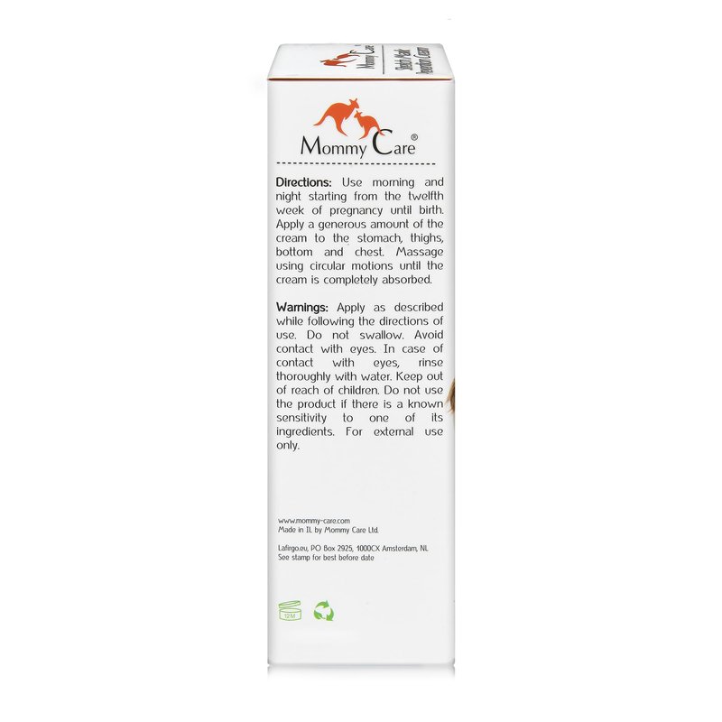 Use morning and night starting from the twelfth week of pregnancy until birth. Apply a generous amount of the cream to the stomach, thighs, bottom, and chest. Massage using circular motions until the cream is completely absorbed.