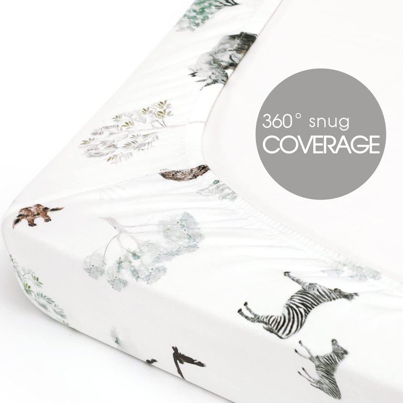 - Apple It Within Seconds: Thanks to the elastic bottom, our pack n play sheets come in a classic, the stylish african savannah animals pattern that will put the finishing touches to any bedding. Make sure to give your darling a serene and calm bed to rest in.