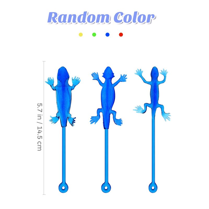 - Easy to Play: The lizards tail end has the same length as its body so you can loop it around your fingers before flinging into the air. Dont worry, theyll stick around! Flick em, stick em, slap em, swing em, you can have all kinds of fun with these funky leaping lizards