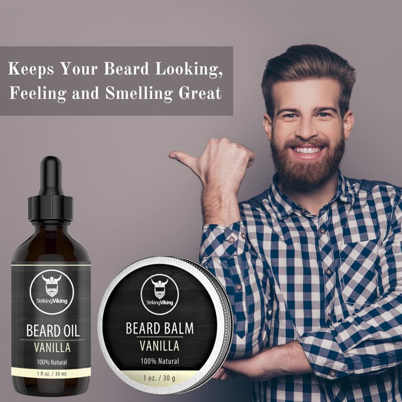 Striking Viking Beard Oil and Balm - Leave in Beard Conditioner - Tames, Styles, Softens, and Moisturizes Beards and Mustache - Made with All Natural and Organic Argan and Jojobo Oils, Vanilla