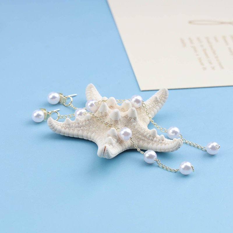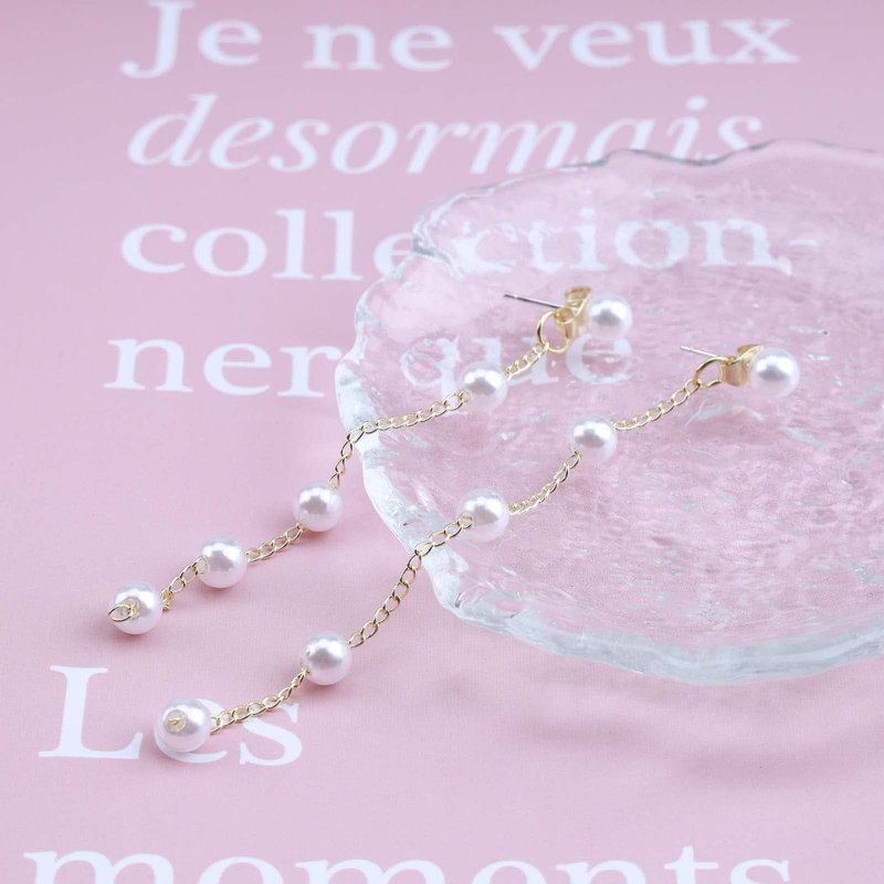 - Gold long pearl chain earrings.Item Details:Handmade Item.Size:As Shown.Color:Gold.Materials:Quality Alloy/Pearl.Location:Ear.Style:Boho/Vintage.