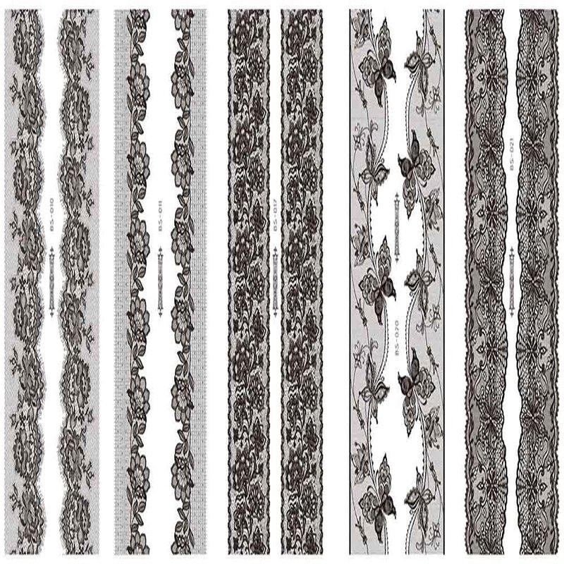 About usOur temporary tattoos are safe and non-toxic, and are perfect for parties, festivals, club nights/festivals, carnivals, fancy dresses, or just to shock your friends and this is not a real tattoo.Sexy Lace Tattoo Sticker Specification:Package Included: 5 Sheets Size:9.6*4.2 inch (240mm*105mm) (L*W)Color:BlackHigh Quality: Non-toxic and tasteless, will not harm the skin.Our temporary Tattoos can last 3-5 days according to the position you stick it. How To Use: 1. Clean and dry the skin completely. 2. Remove the transparent film,place tattoo face down on skin. 3. Wet the tattoo thoroughly with a sponge or towel. 4. After 20-30 seconds, gently remove the back paper. 5. Allow tattoo to dry. How To Remove: Remove with baby oil or olive oil, and clean with soap and water.Warm tipMay not be suitable for senstive skin types. Avoid contact with eyes.Thank you for viewing and please do not hesitate to contact us if you have any questions!