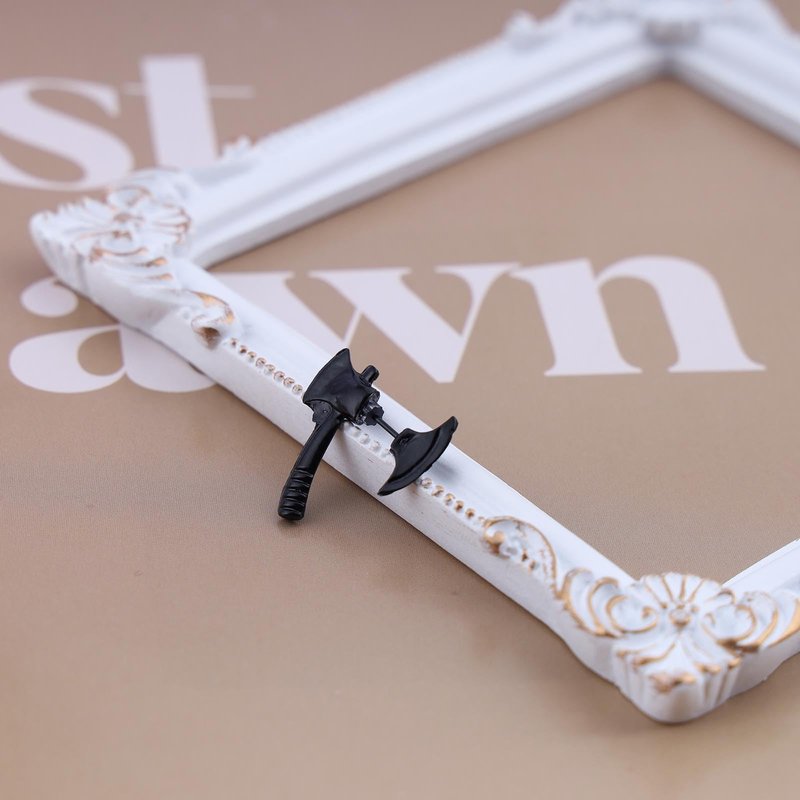 - Black axe jacket earrings.Item Details:Handmade Item.Size:As Shown.Color:Black.Materials:Quality Alloy.Location:Ear.Style:Boho/Vintage.