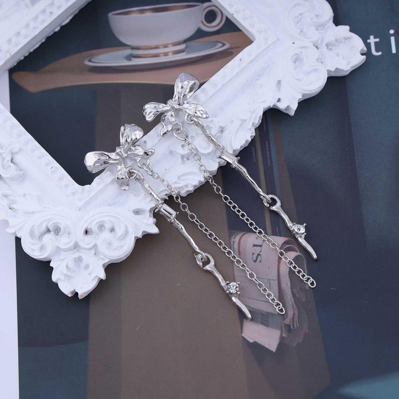 - Silver bow chain earrings.Item design:Diversify Collocation.Used to Groom Your the Ear for a More Layered Look , It is Wonderful Everyday Jewelry