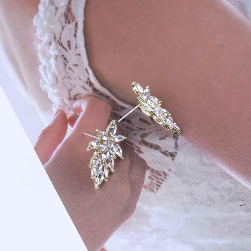- Wedding crystal earrings.Item Details:Handmade Item.Size:As Shown.Color:Gold.Materials:Quality Alloy/Crystal.Location:Ear.Style:Boho/Vintage.
