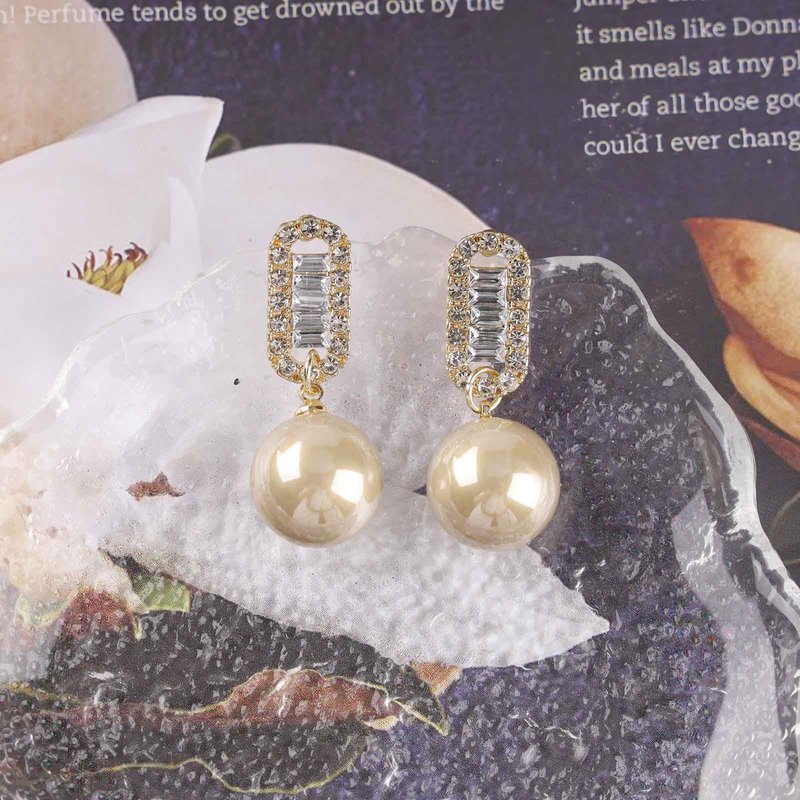 - Crystal pearl drop earrings.Item Details:Handmade Item.Size:As Shown.Color:Gold.Materials:Quality Alloy/Crystal.Location:Ear.Style:Boho/Vintage.