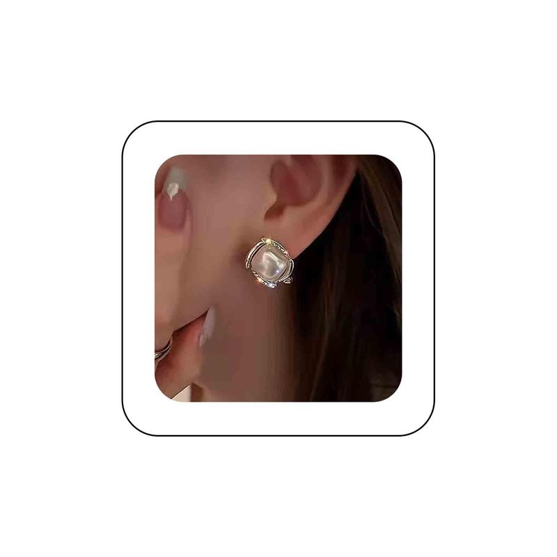 Sttiafay Vintage Crystal Square Earrings Moonstone Square Stud Earrings Gold Rhinestone Opal Stone Earrings Geometry Moonstone Earrings Jewelry for Women
