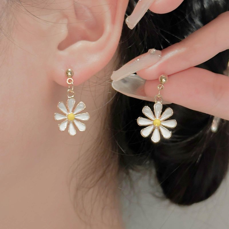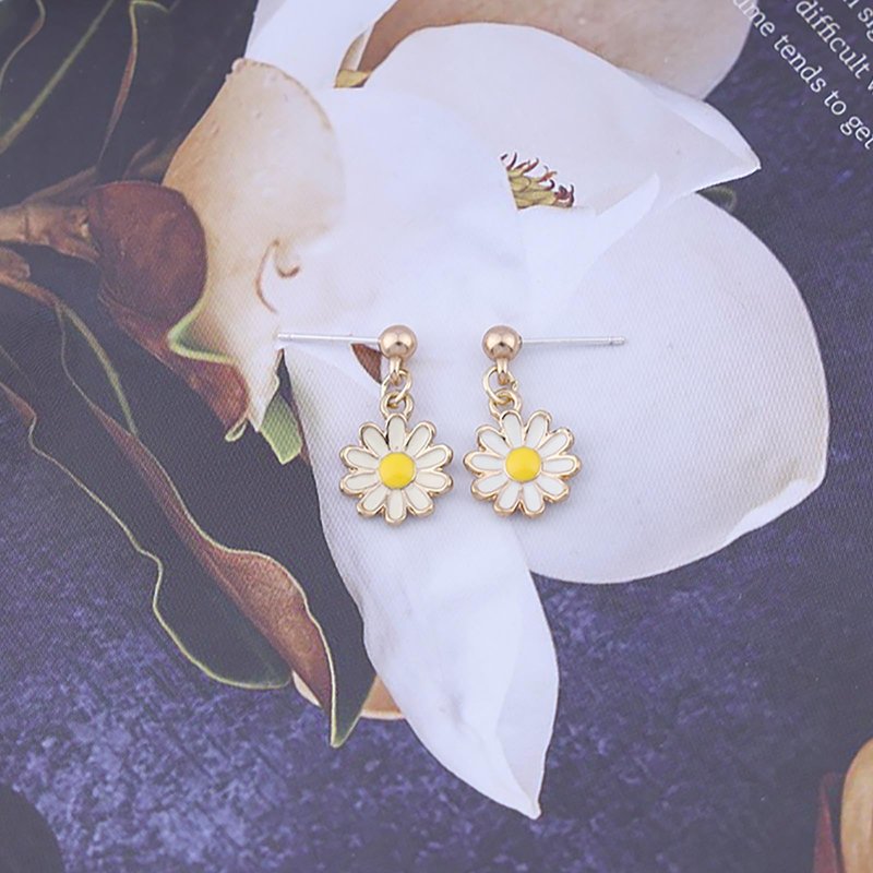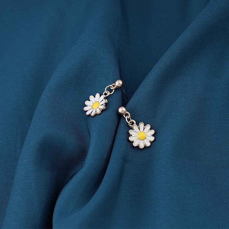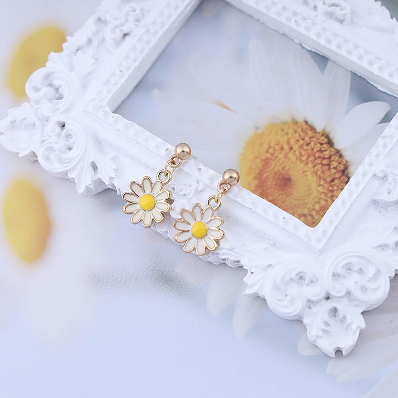 - Daisy flower drop earrings.Item Details:Handmade Item.Size:As Shown.Color:Gold.Materials:Quality Alloy/Flower.Location:Ear.Style:Boho/Vintage.