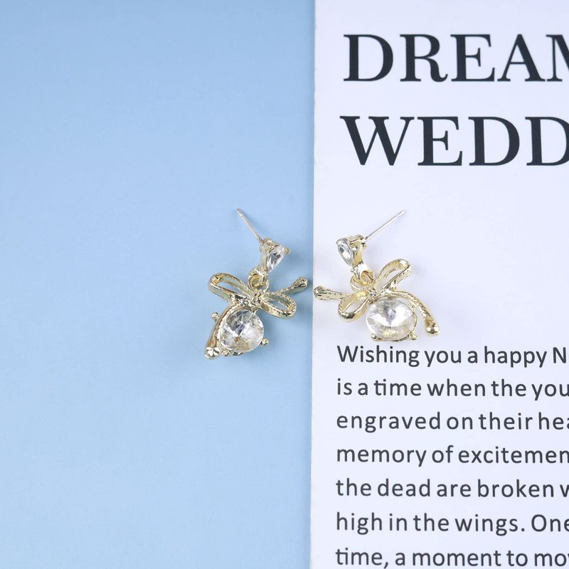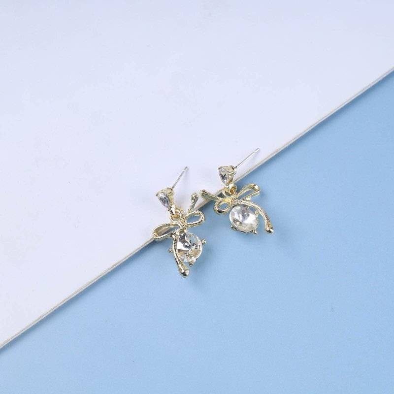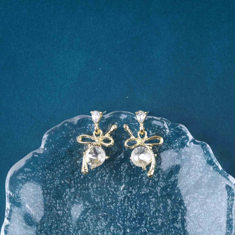 - Crystal bow earrings.Item Details:Handmade Item.Size:As Shown.Color:Gold.Materials:Quality Alloy/Crystal.Location:Ear.Style:Boho/Vintage.