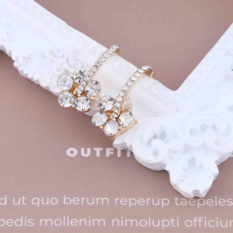 - Crystal flower earrings.Item Details:Handmade Item.Size:As Shown.Color:Gold.Materials:Quality Alloy/Crystal.Location:Ear.Style:Boho/Vintage.
