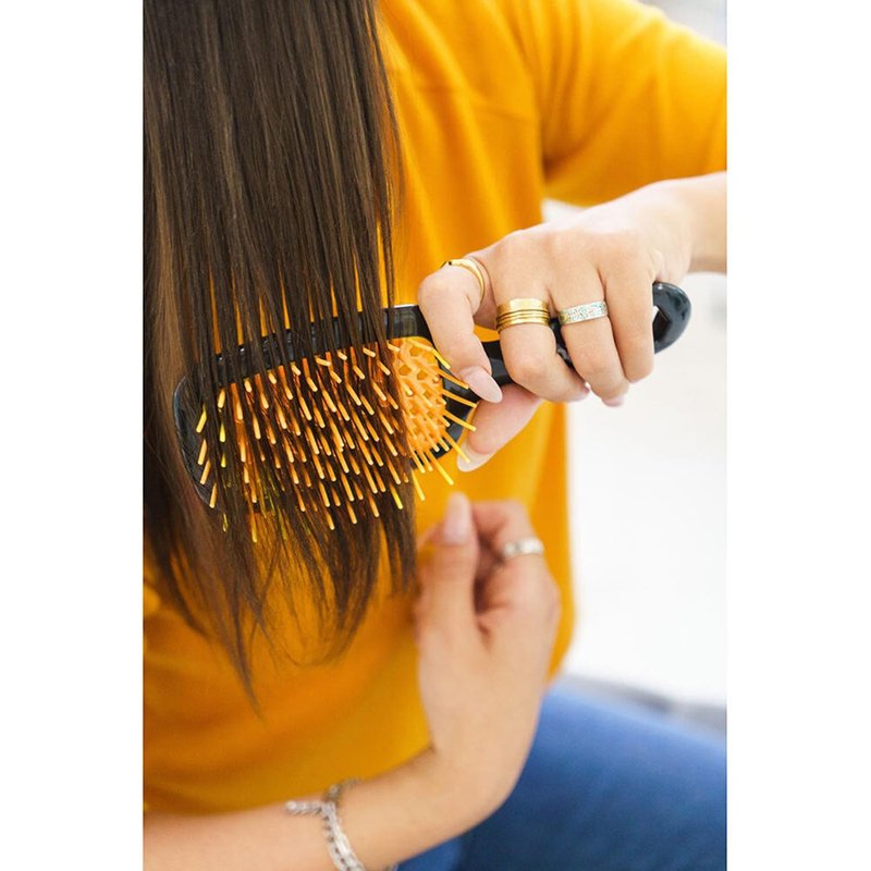 Wet & Dry Vented Detangling Hair Brush [Color May Vary] The Detangle Hair Brush is designed to effortlessly glide through hair, detangling knots and reducing breakage. Featuring a unique vented cushion design, it ensures gentle detangling with minimal tugging and pulling. The brush is equipped with flexible, soft bristles that work well on all hair types, making it ideal for both wet and dry hair. Its ergonomic handle provides a comfortable grip, allowing for easy use without causing strain on the hand or wrist.