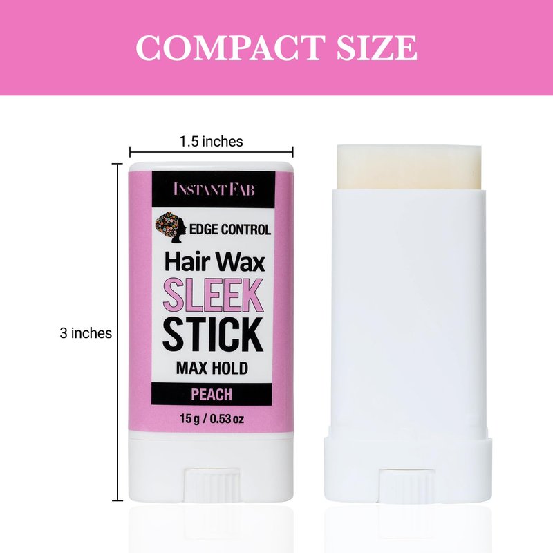 STUDIO LIMITED Instant Fab Edge Control Hair Wax Sleek Stick Max Hold 0.53oz/ 15g, Non-greasy Styling Hair Pomade Stick, Hair Wax Stick for Hair, Wax Stick for Flyaways Hair (Peach, 2 Pack)