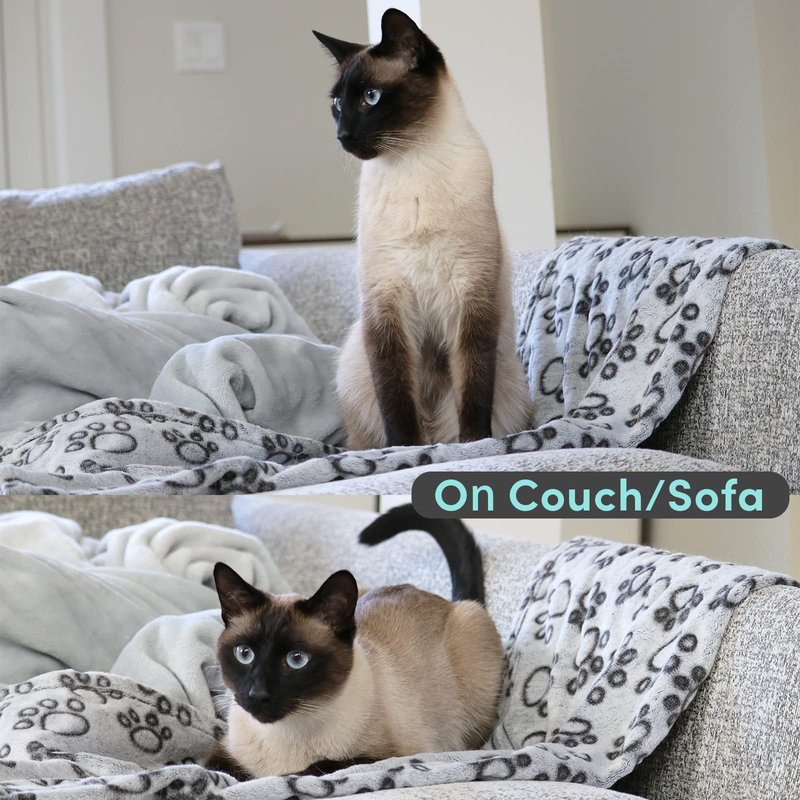 - 🥇PREMIUM MATERIAL FOR PETS ONLY: Super Soft & Warm comfy fleece for your pets, exclusive cute paw prints design on the top, lovely solid gray color on the back, no fear of peeing, bitting, chewing and tearing. Your dog will love this dog products!