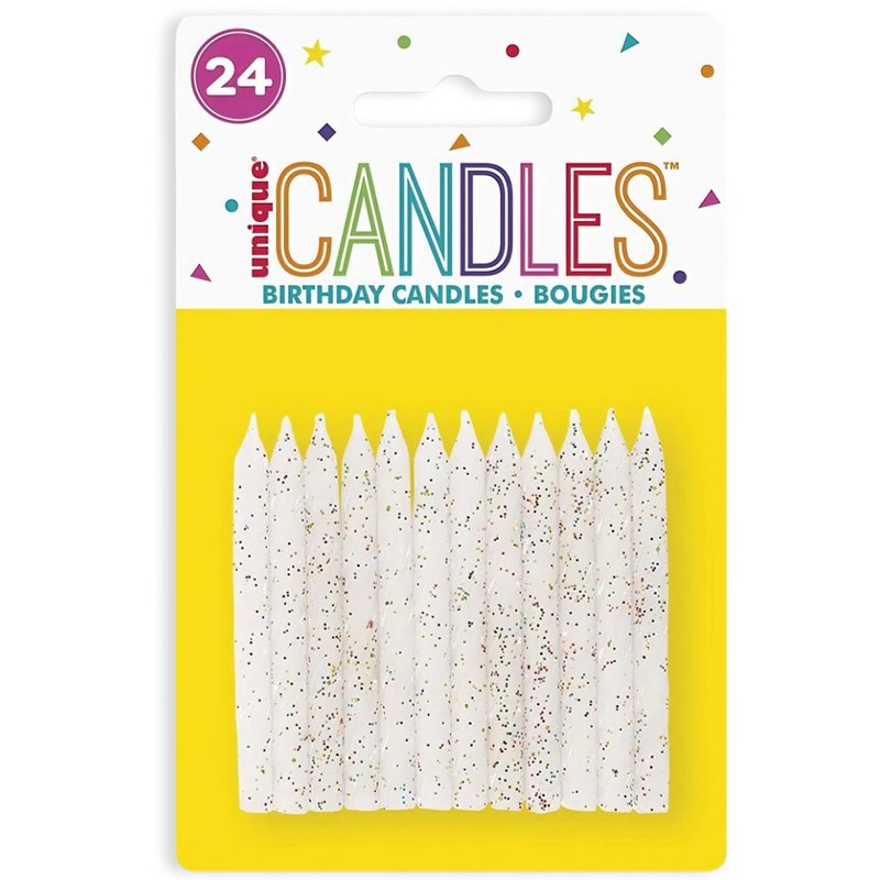 Stunning White & Glitter Spiral Birthday Candles - Pack of 24 - Dazzle Your Celebrations with These Gorgeous and Long-Lasting Party Candles