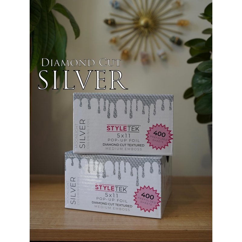 STYLETEK 5X11 Pop-Up Foil Sheets, Diamond Embossed, 400 Sheets per box, Aluminum Silver Foil, Salon Professional Hair Foil