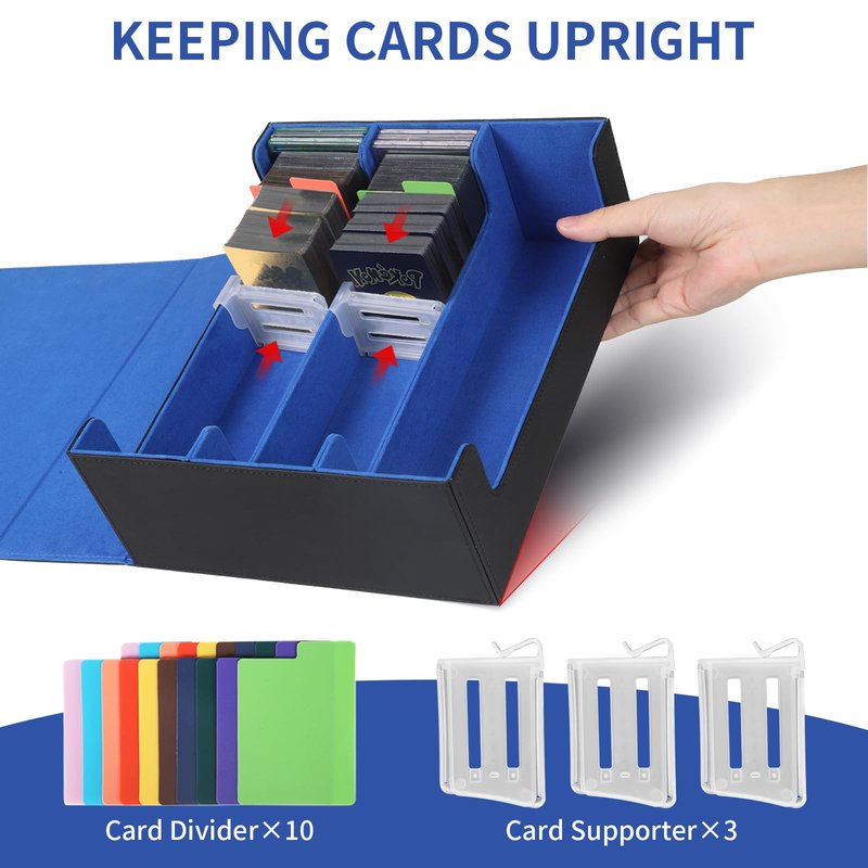 - 【Super Large Capacity】- This trading card storage box is large enough to store 2400+ sleeveless cards, 1050+ double-sleeved cards, or 1800+ single-sleeved cards, excluding top loaders and magnetic holders.