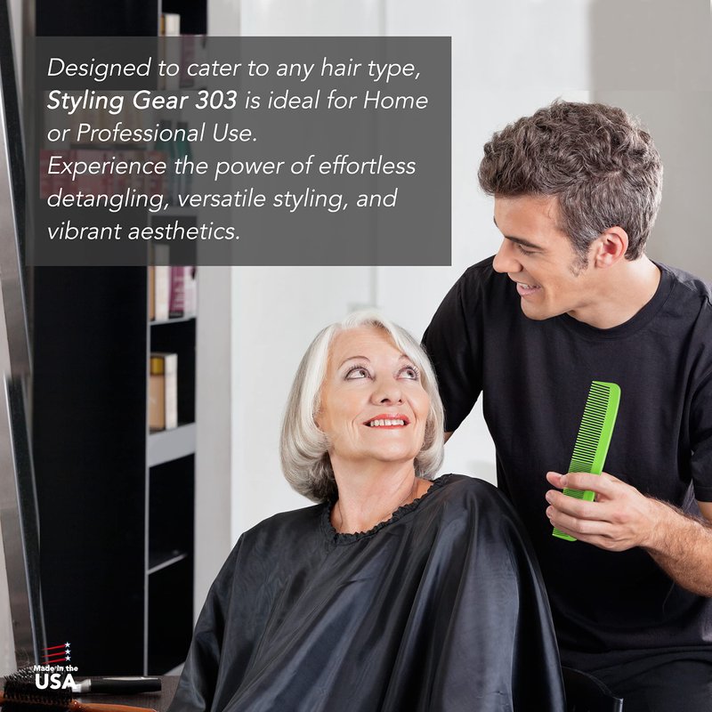Styling Gear #303 Extra Large All-Purpose Hair Combs. The ultimate tool for effortlessly styling all hair types and lengths. Whether you need combs for women, combs for men, or hair combs for hair stylists, Styling Gear #303 combs have got you covered. Designed with wide teeth and fine teeth, these combs are perfect for detangling curly hair, hair detanglers. With their durable construction and smooth edges, Styling Gear #303 combs are a great option for those in need of a wide tooth comb for curly hair or a detangling comb. In addition to being a great curly hair comb, Styling Gear #303 combs are also perfect for men. Great as a clipper combs, large tooth comb, fine tooth comb, wide tooth comb for wet hair, and a wide comb. For those in need of a styling comb or a shower comb, our wide tooth combs for women and men are perfect. The scalp comb is also a great option for those in need of a detangler comb or a wig comb. Our barber combs are also great for kids, making it easier to detangle their hair without causing pain or discomfort. And for those always on the go, our travel comb is perfect for styling hair on the fly. If you're looking for combs for natural black hair or the best hair detangler for matted hair, look no further than Styling Gear #303. Our wide tooth comb for curls is perfect for those with natural hair, and our fine tooth combs for women are great for styling short hair. They are great combs for women, combs for men, or combs for hair stylists, Styling Gear #303 has a wide range of uses for you. From wide tooth combs to fine tooth combs, scalp combs to shower combs.