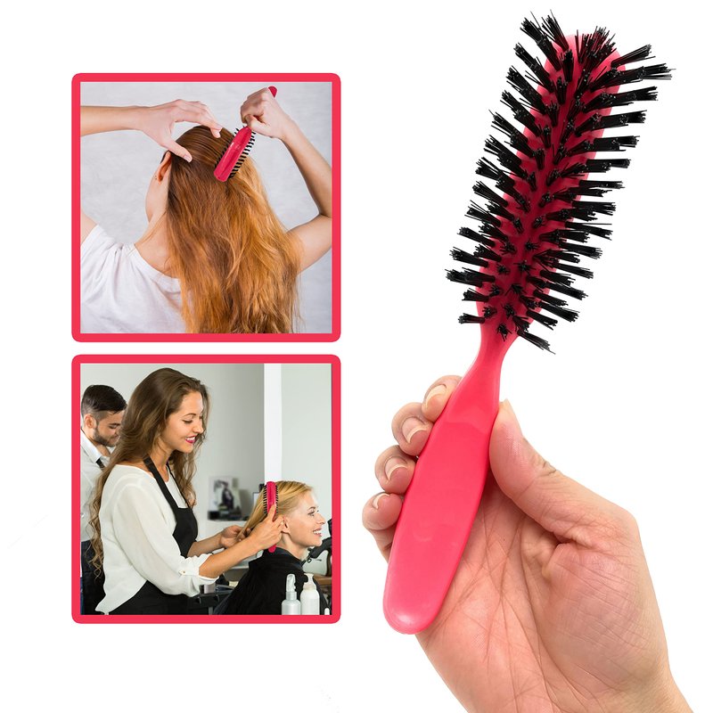 The Styling Gear nylon bristles hair brush 7 Row styling brushes for hair has nylon bristles that will not damage your hair and are gentle on all types of hair. Bristle hair brushes for women also has an ergonomic handle for easy grip and control. Best hair brush for fine hair with 4 inches long handle which is easy to grip on the bottom to prevent slipping while using it. Nylon hair brush relaxing hair purse size the best gift for girls and adults. 7 Row Style Brush is perfect for everyday use because it helps detangle your hair without causing any damage to your precious locks. It can be used after showering, or before going out for a night on the town! You'll love how great this brush makes your hair look!