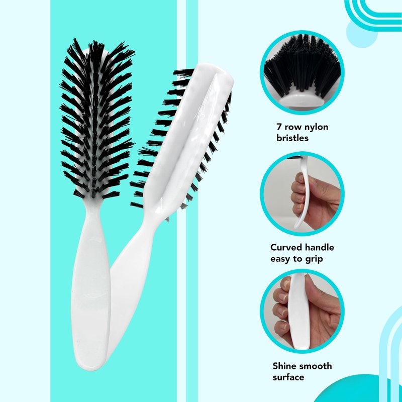 Styling Gear Hair Brush Nylon Bristles 7 Row Teasing Womens Brush Small Travel Hairbrush Brush For Hair 1 Pcs. (White)