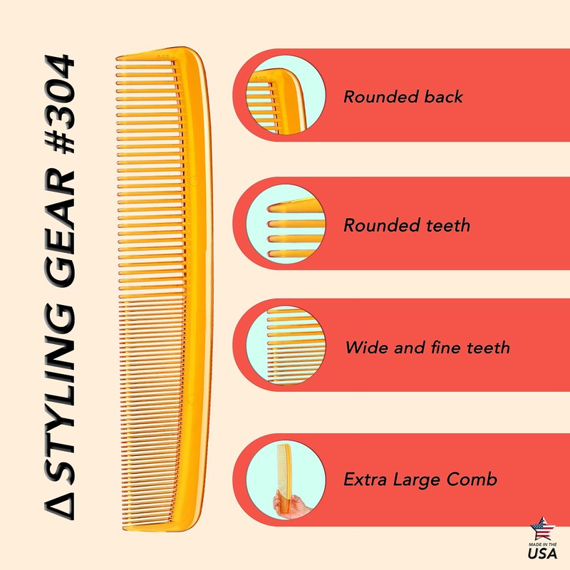 - Stylish vibrant amber colors: Let your personal style shine with Styling Gear #304's extra-large all-purpose hair combs, available in a range of eye-catching amber and clear shades.