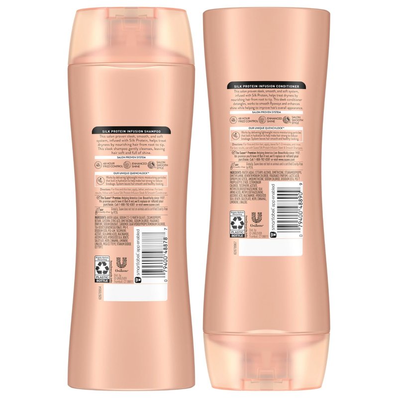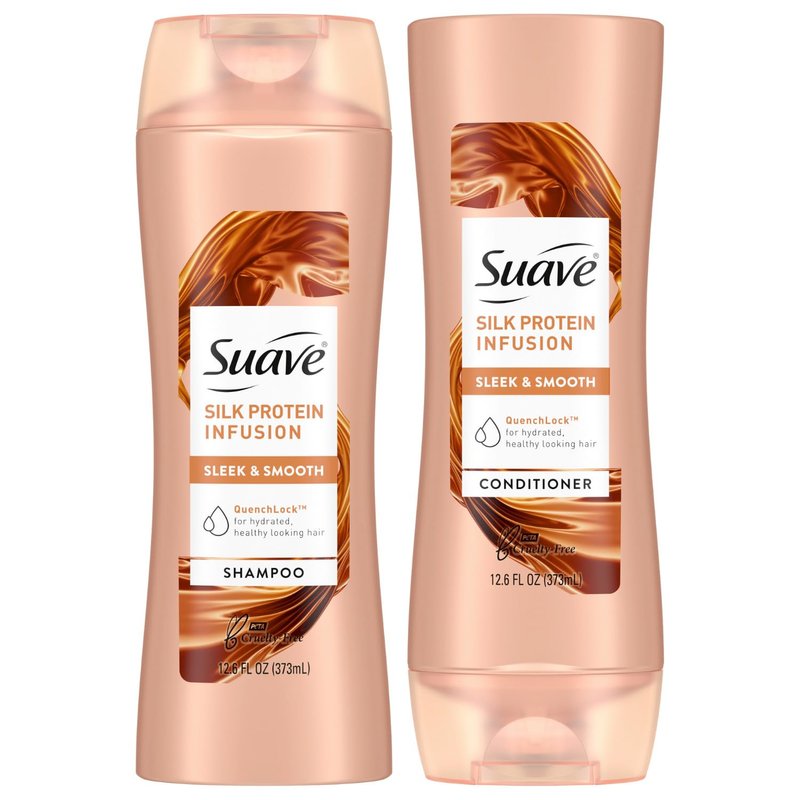 - SILK PROTEIN SHAMPOO & CONDITIONER: Suave Professionals Silk Protein Infusion Sleek & Smooth Shampoo and Conditioner strengthens and nourishes dry hair from root to tip.