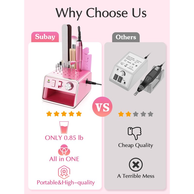 - Value for Money: Why invest in multiple nail tech devices when you can have it all in one? Our nail drill offers unbeatable value, providing a comprehensive solution for all your nail art needs. Not only do you save money by purchasing a single drill, but you'll also save time by not having to switch between multiple tools.
