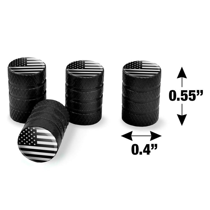 These Subdued American USA Flag Black White Military Tactical valve stem caps are high-quality unique and will add a fun and a stylish look to your rims! Each valve stem cap is approximately 0.55" (14mm) in height and includes an inserted rubber o-ring for an air-tight fit.