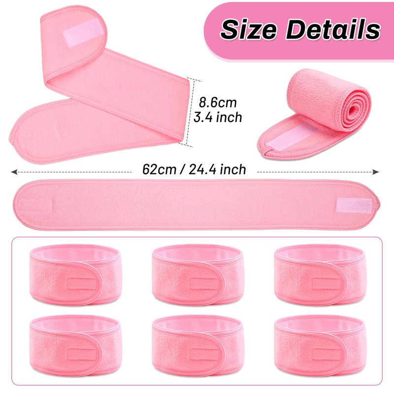 Sublaga Spa Headband Hair Wrap, Sweat Headband Head Wrap Hair Towel Wrap Non-slip Stretchable Washable Makeup Headband for Face Wash (6pcs Pink)