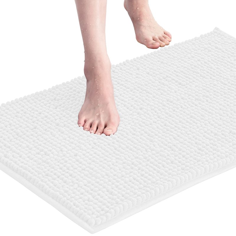 subrtex Bathroom Rugs Chenille Bath Rug Soft Short Plush, Water Absorbent Shower Mat Quick Dry Machine Washable(White,16" x 24")