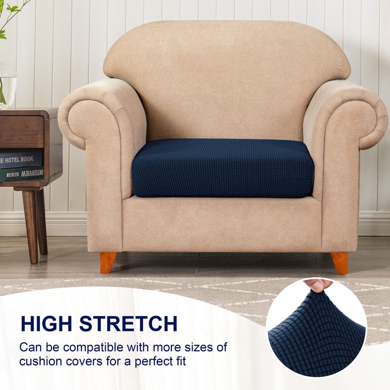 - MEASUREMENT: Please measure your cushion before purchase. Our cushion slipcovers have 3 sizes. Sofa cushion: Length: 59~75 inch; Width: 20~27 inch; Thickness: 2~9 inch. The cover is fastened shut by elastic band. Our cushion slipcovers also fit for T-cushion.